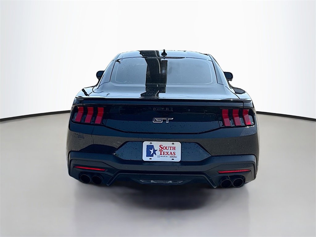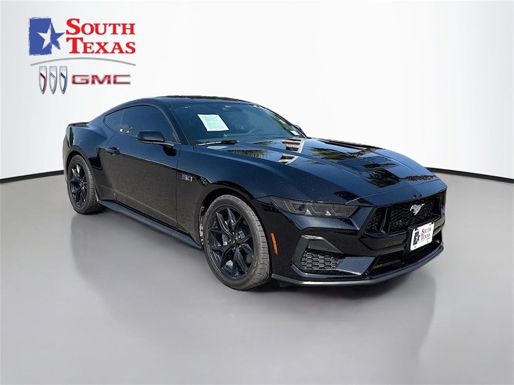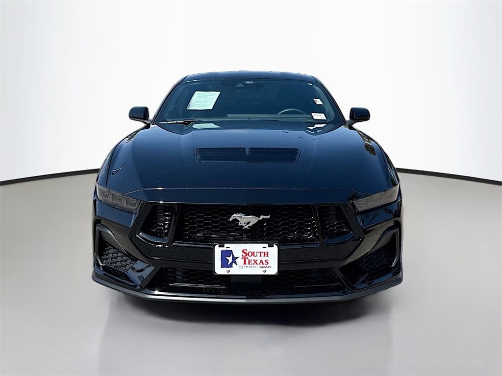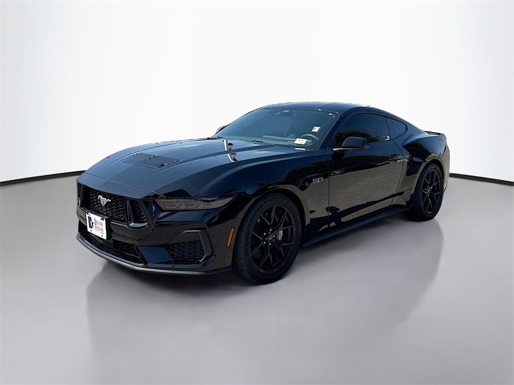 Clean CARFAX. CARFAX One-Owner. Shadow Black 2025 Ford Mustang GT Premium RWD 10-Speed Automatic 5.0L V8 Ti-VCTWE ARE OPEN FOR ALL YOUR SALES AND SERVICE NEEDS! COMPLETE ONLINE BUYING EXPERIENCE AVAILABLE!CALL 956-661-5000 TO SCHEDULE YOUR CONTACT FREE TEST DRIVE TODAY!3.55 Limited Slip Rear Axle, 4-Wheel Disc Brakes, ABS brakes, Active Valve Performance Exhaust, Air Conditioning, Alloy wheels, AM/FM Stereo, Auto High-beam Headlights, Automatic temperature control, Brake assist, Bumpers: body-color, Compass, Delay-off headlights, Driver door bin, Driver vanity mirror, Dual front impact airbags, Dual front side impact airbags, Electronic Stability Control, Emergency communication system: 911 Assist, Equipment Group 400A Standard Package, Exterior Parking Camera Rear, Four wheel independent suspension, Front anti-roll bar, Front Bucket Seats, Front Center Armrest, Front dual zone A/C, Front reading lights, Fully automatic headlights, Illuminated entry, Internet access capable: FordPass Connect, Knee airbag, Leather Shift Knob, Leather steering wheel, Low tire pressure warning, Occupant sensing airbag, Outside temperature display, Overhead airbag, Overhead console, Panic alarm, Passenger door bin, Passenger vanity mirror, Power door mirrors, Power steering, Power windows, Premium Floor Liners Front & Rear (w/Carpet Mats), Radio data system, Rain sensing wipers, Rear anti-roll bar, Rear Parking Sensors, Rear window defroster, Remote keyless entry, Speed control, Speed-sensing steering, Speed-Sensitive Wipers, Split folding rear seat, Spoiler, Sport steering wheel, Steering wheel mounted audio controls, SYNC 4, Tachometer, Telescoping steering wheel, Tilt steering wheel, Traction control, Trip computer, Variably intermittent wipers, Voltmeter. Recent Arrival!Odometer is 1255 miles below market average!
