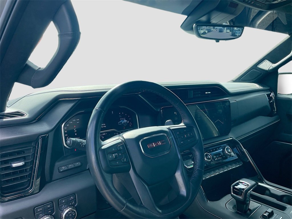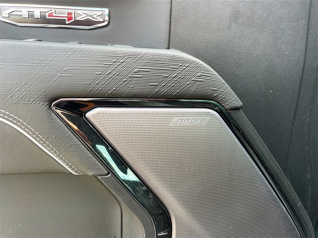 10-Speed Automatic, 4WD, Obsidian Rush Leather, 12 Speakers, 120-Volt Bed Mounted Power Outlet, 120-Volt Interior Power Outlet, 16-Way Power Driver Seat Adjuster w/Lumbar, 16-Way Power Passenger Seat Adjuster w/Lumbar, 2 Charge/Data USB Ports Inside Center Console, 2 Type-C Charge-Only Rear USB Ports, 2 USB Ports, 220 Amp Alternator, 3.23 Rear Axle Ratio, 4-Wheel Disc Brakes, ABS brakes, Air Conditioning, Alloy wheels, AM/FM radio: SiriusXM with 360L, Apple CarPlay/Android Auto, Auto High-beam Headlights, Auto-dimming door mirrors, Auto-dimming Rear-View mirror, Automatic Emergency Braking, Automatic temperature control, Bed View Camera, Block heater, Bose Premium Series w/12-Speaker System, Brake assist, Buckle to Drive, Color-Keyed Carpeting Floor Covering, Compass, Deep-Tinted Glass, Delay-off headlights, Driver door bin, Driver Memory, Driver vanity mirror, Driver-Selectable Full-Locking Front Differential, Driver-Selectable Full-Locking Rear Differential, Dual front impact airbags, Dual front side impact airbags, Electric Rear-Window Defogger, Electronic Stability Control, Engine Block Heater, Floor-Mounted Center Console, Following Distance Indicator, Forward Collision Alert, Front anti-roll bar, Front Bucket Seats, Front Center Armrest, Front dual zone A/C, Front fog lights, Front License Plate Kit, Front Pedestrian Braking, Front Prem Floor Liners w/Removable Carpet Insert, Front Rain-Sensing Wipers, Front reading lights, Front wheel independent suspension, Full Grain Leather Seat Trim, Fully automatic headlights, Garage door transmitter, Genuine wood dashboard insert, Genuine wood door panel insert, Gloss Black Header w/Drk Nickel Grille Insert Bars, GMC Connected Access Capable, HD Surround Vision, Heads-Up Display, Heated 2nd Row Outboard Seats, Heated door mirrors, Heated Driver & Front Outboard Passenger Seating, Heated front seats, Heated rear seats, Heated steering wheel, Heavy-Duty Air Filter, Hill Descent Control, Hitch Guidance, Hitch View, Illuminated entry, In-Vehicle Trailering System App, Integrated Trailer Brake Controller, IntelliBeam Automatic High Beam On/Off, Keyless Open & Start, Lane Keep Assist w/Lane Departure Warning, LED Cargo Area Lighting, Low tire pressure warning, Memory seat, Multicolor 15 Diagonal Head-Up Display, MultiPro Tailgate Audio System by Kicker (LPO), Navigation System, Occupant sensing airbag, Off-Road Suspension, OnStar & GMC Connected Services Capable, Outside temperature display, Overhead airbag, Overhead console, Panic alarm, Passenger door bin, Passenger vanity mirror, Perimeter Lighting, Power Door Locks, Power door mirrors, Power driver seat, Power Front Passenger Windows w/Express Up/Down, Power Front Windows w/Driver Express Up/Down, Power moonroof, Power passenger seat, Power Rake & Telescoping Steering Column, Power Rear Windows w/Express Down, Power Sliding Rear Window w/Rear Defogger, Power steering, Power Sunroof, Power windows, Preferred Equipment Group 4SG, Premium audio system: GMC Infotainment System, Push Button Start, Radio data system, Radio: Premium GMC Infotainment Audio System, Rain sensing wipers, Rear Cross Traffic Braking, Rear Pedestrian Detection, Rear Prem Floor Liners w/Removable Carpet Insert, Rear reading lights, Rear seat center armrest, Rear step bumper, Rear Wheelhouse Liners, Rear window defroster, Remote keyless entry, Remote Vehicle Starter System, Safety Alert Seat, Security system, SiriusXM w/360L, Speed control, Speed-sensing steering, Split folding rear seat, Spray-On Pickup Bedliner w/AT4X Logo, Steering Wheel Audio Controls, Steering wheel mounted audio controls, Tachometer, Telescoping steering wheel