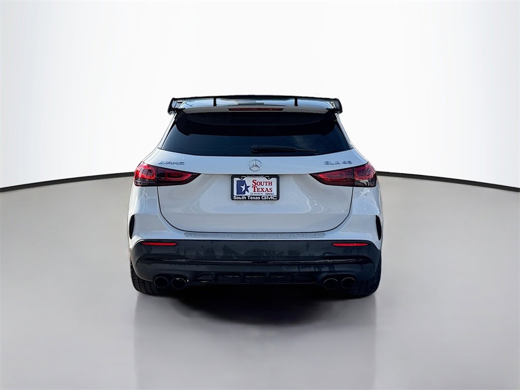 Clean CARFAX. Polar White 2021 Mercedes-Benz GLA GLA 45 AMG® 4MATIC® 4MATIC® 8-Speed Automatic I4WE ARE OPEN FOR ALL YOUR SALES AND SERVICE NEEDS! COMPLETE ONLINE BUYING EXPERIENCE AVAILABLE!CALL 956-661-5000 TO SCHEDULE YOUR CONTACT FREE TEST DRIVE TODAY!4-Wheel Disc Brakes, 6 Speakers, ABS brakes, Adaptive suspension, Air Conditioning, Alloy wheels, AM/FM radio, Apple CarPlay®/Android Auto®, Auto-dimming door mirrors, Auto-dimming Rear-View mirror, Automatic temperature control, Brake assist, Bumpers: body-color, Child-Seat-Sensing Airbag, Delay-off headlights, Driver door bin, Driver vanity mirror, Dual front impact airbags, Dual front side impact airbags, Electronic Stability Control, Emergency communication system: eCall Emergency System and Active Emergency Stop Assist, Exterior Parking Camera Rear, Four wheel independent suspension, Front anti-roll bar, Front Bucket Seats, Front Center Armrest, Front dual zone A/C, Front fog lights, Front reading lights, Front Sport Seats, Fully automatic headlights, Heated door mirrors, Heated Front Seats, Heated front seats, Illuminated entry, Knee airbag, Low tire pressure warning, MB-Tex/DINAMICA Upholstery, Memory seat, Occupant sensing airbag, Outside temperature display, Overhead airbag, Overhead console, Panic alarm, Passenger door bin, Passenger vanity mirror, Power door mirrors, Power driver seat, Power Liftgate, Power passenger seat, Power steering, Power windows, Radio data system, Radio: MBUX Multimedia System, Rain sensing wipers, Rear anti-roll bar, Rear fog lights, Rear reading lights, Rear window defroster, Rear window wiper, Remote keyless entry, Roof rack: rails only, Security system, Speed control, Speed-sensing steering, Split folding rear seat, Spoiler, Sport steering wheel, Steering wheel mounted audio controls, Tachometer, TBD Axle Ratio, Telescoping steering wheel, Tilt steering wheel, TIREFIT Mobility Kit, Traction control, Trip computer, Turn signal indicator mirrors, Variably intermittent wipers, Wheels: 19 AMG® 10-Spoke. Recent Arrival!20/27 City/Highway MPG